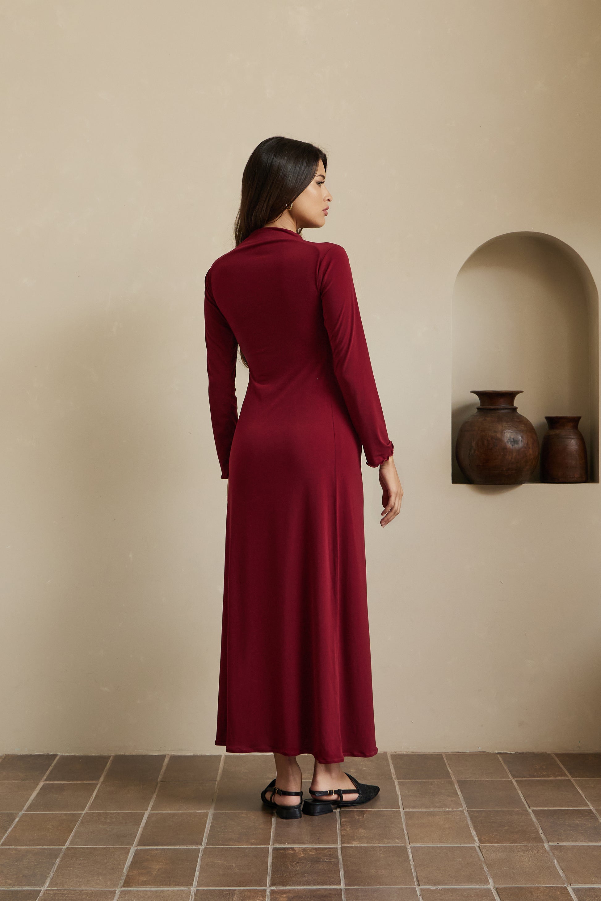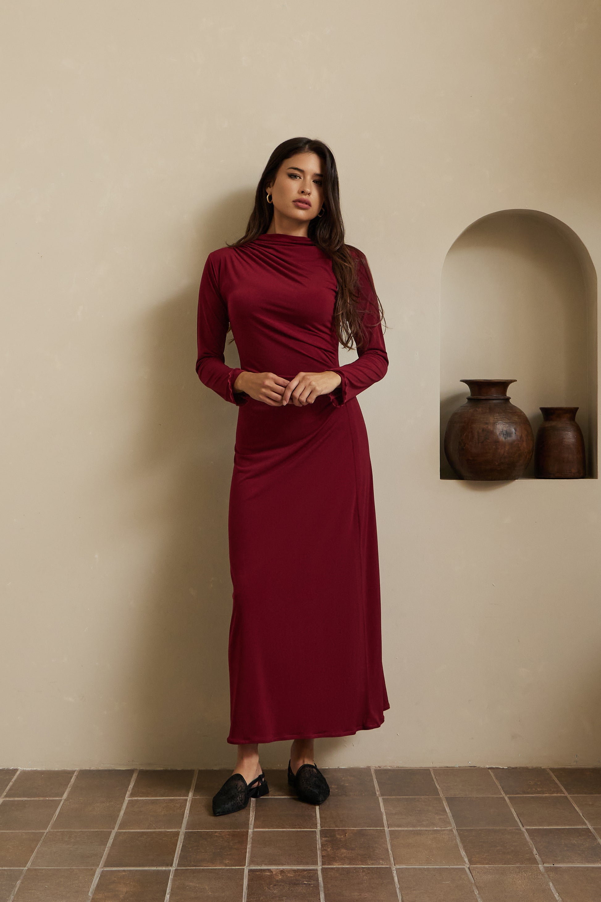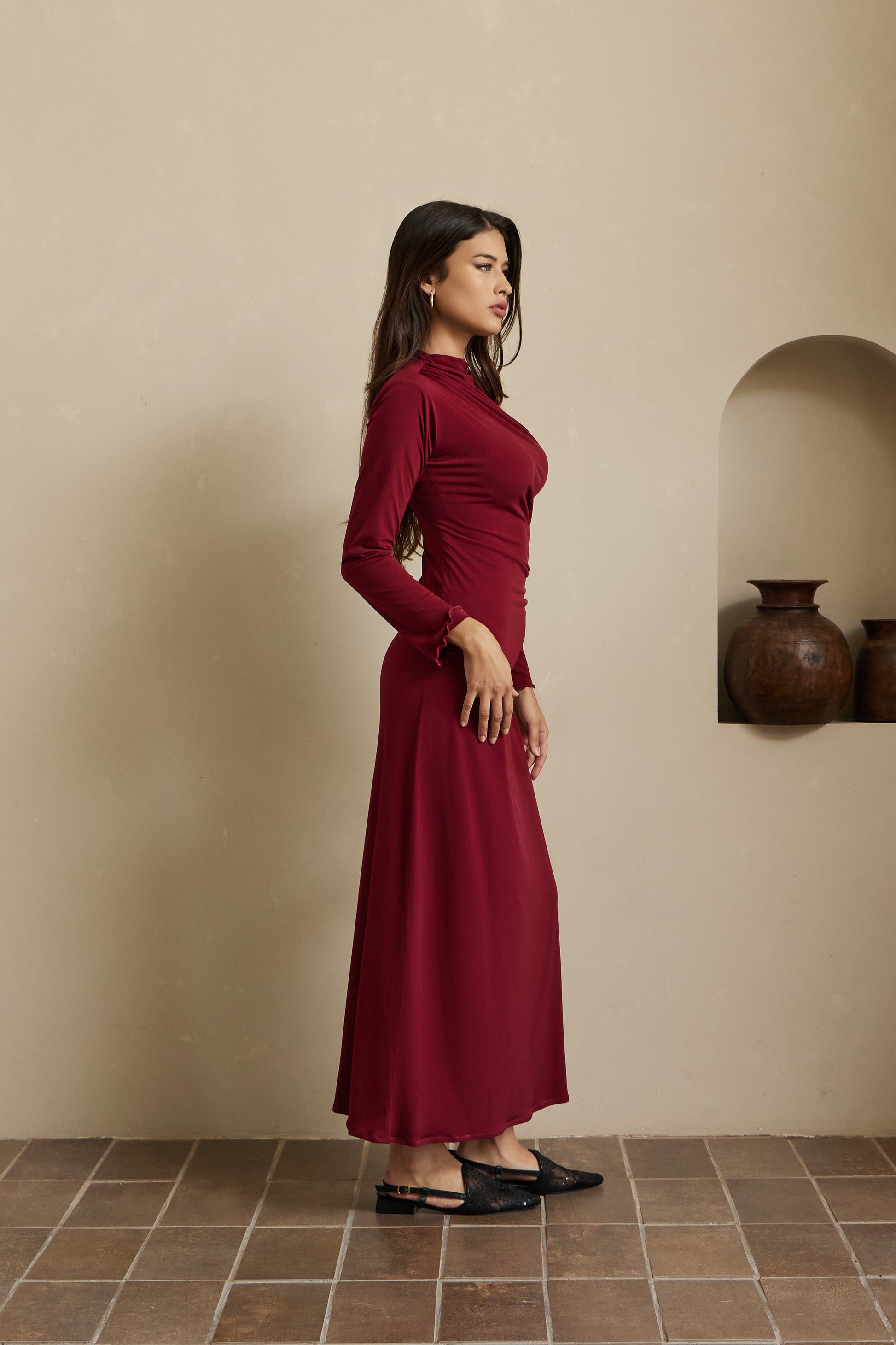 Show off your curves in this sleek red dress. Designed with long sleeves and a stretchy, form-fitting fabric, it hugs your body perfectly for a flattering, comfortable fit that enhances your natural shape.