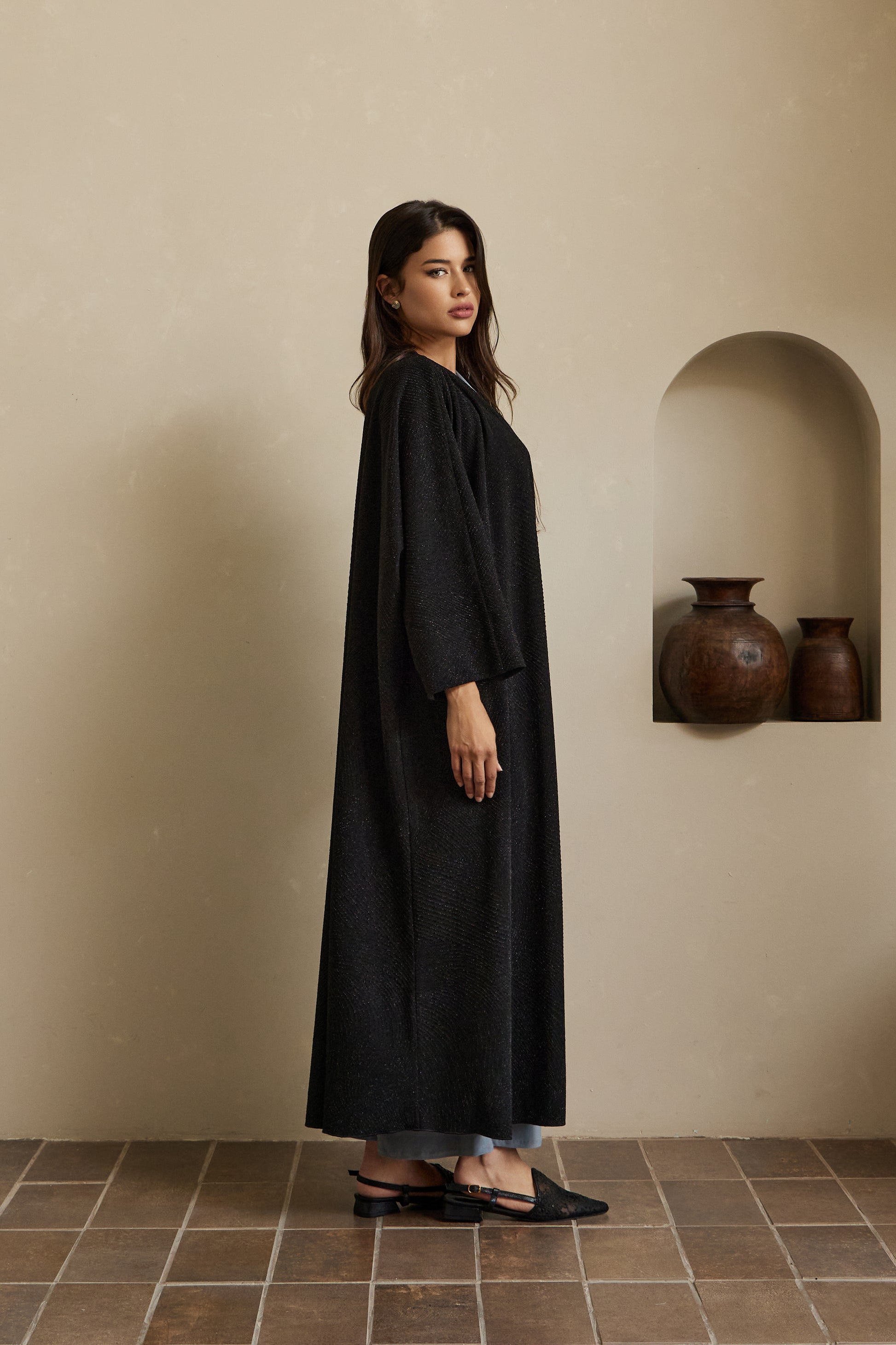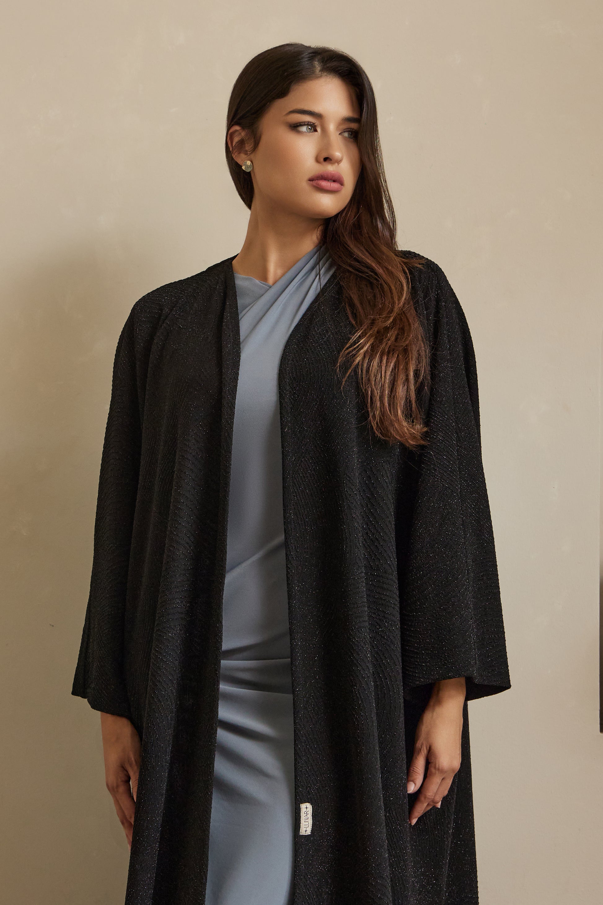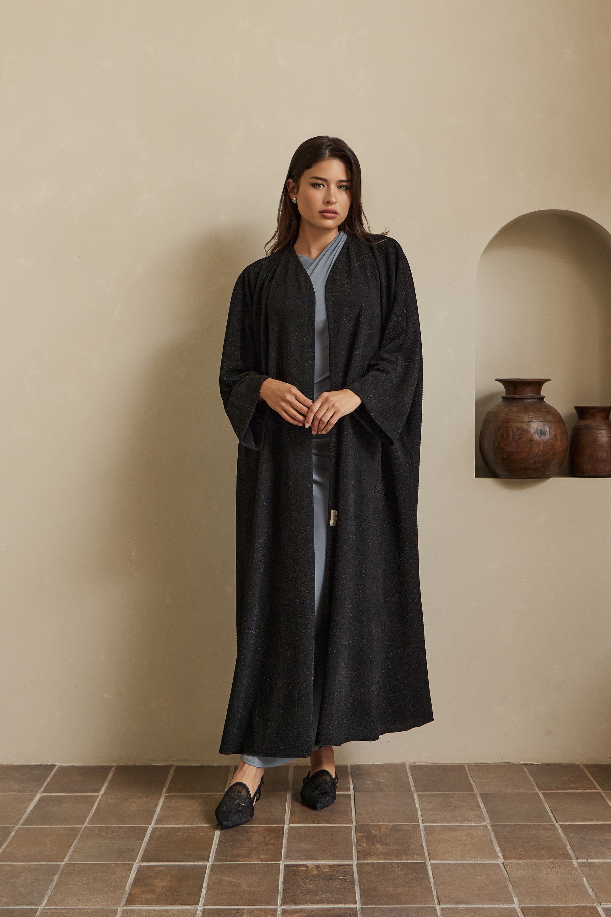 The “Starlit” abaya features delicate glittery lines that catch the light with every movement, adding a touch of sparkle to your silhouette. Perfect for a graceful yet modern look, it combines timeless tradition with a hint of glamour, making it ideal for both everyday wear and special occasions.
